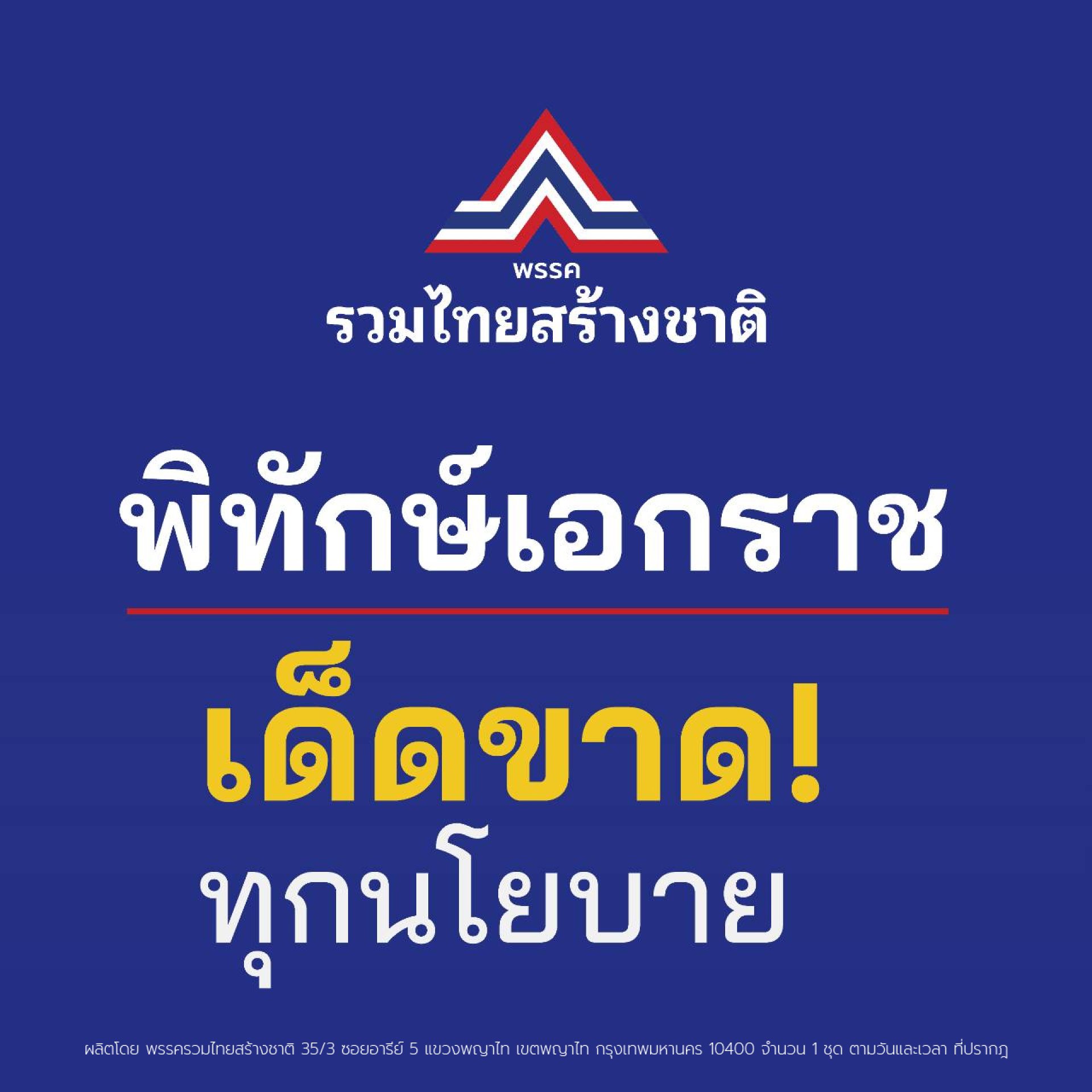 พรรครวมไทยสร้างชาติ = 'พิทักษ์เอกราช เด็ดขาด! ทุกนโยบาย'